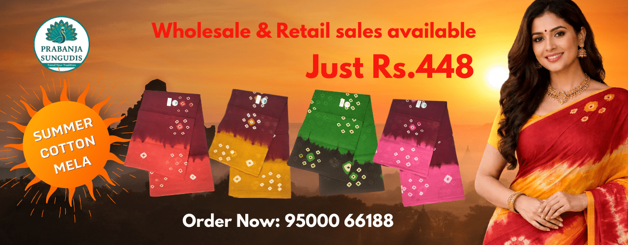 If you’re searching for authentic Bandhani sarees, traditional Sungudi cotton sarees, or Jari-bordered Tie & Dye sarees, look no further than Prabanja Sungudi—where heritage meets craftsmanship and affordability.