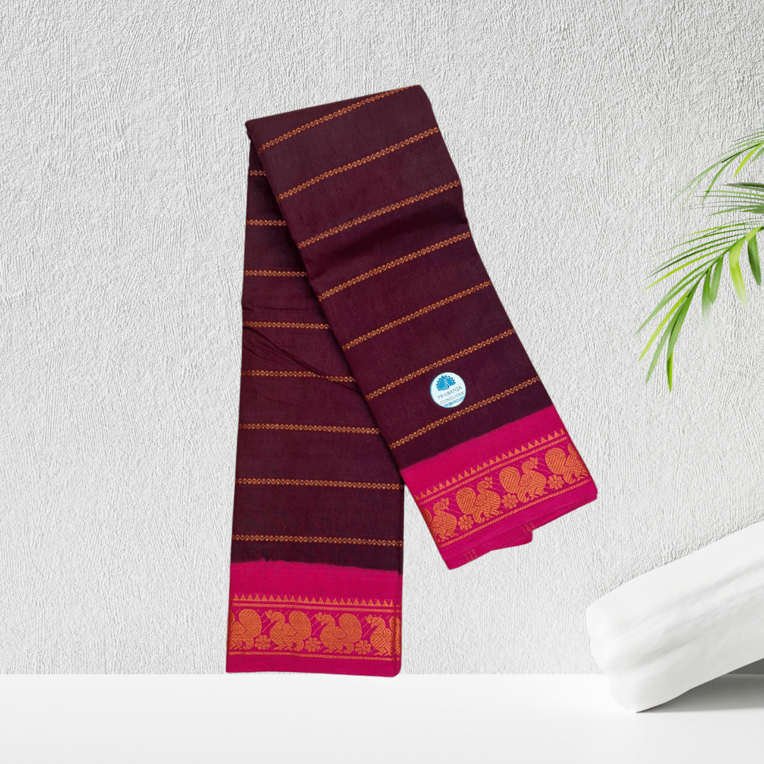 Prabanja Sungudis Zari Velthari Sungudi Cotton Saree | Deep Wine with Rani Pink Border Sungudi Cotton Velthari Saree