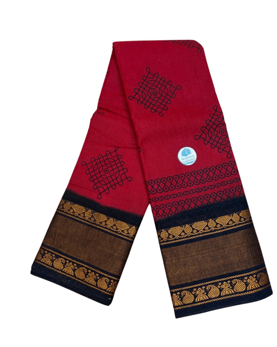 Premium Cotton Fabric: Made from high-quality Sungudi cotton, soft, breathable, and comfortable for all-day wear. Elegant rangoli-inspired Kolam prints that reflect South Indian heritage Rich Zari Border & Pallu. Contrasting maroon border with intricate zari weaving adds a graceful and festive touch Lightweight & Easy to Drape.